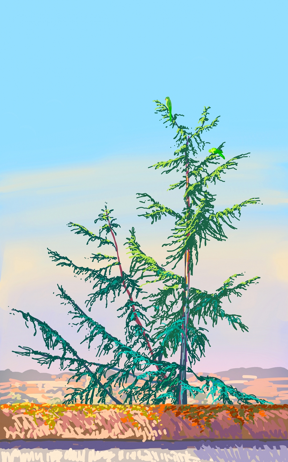 Ces dessins numériques ont été réalisés sur tablette principalement entre 2019 et 2020 lors de la résidence de l’artiste à la Villa Médicis à Rome.